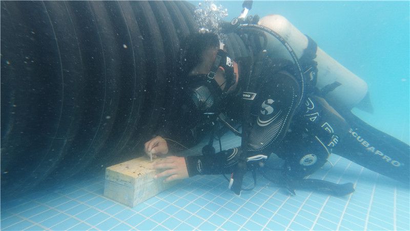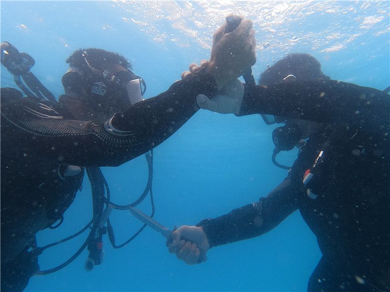 “在水下特殊环境中,一定要学会保持冷静,按照应急处置流程快速排除‘异常’。”队员黄敏聪立即通过水下手语向徐勇兵示意:停止游动,迅速调整呼吸并跟随打开气瓶,重新佩戴好氧气咬嘴和面罩。