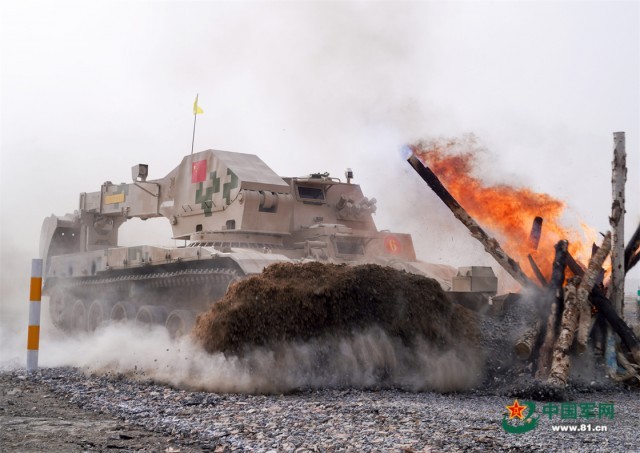 “国际军事比赛—2022”中国库尔勒赛区进行“安全路线”单项赛清障车组比赛,中国参赛车组通过火障。栾铖 摄