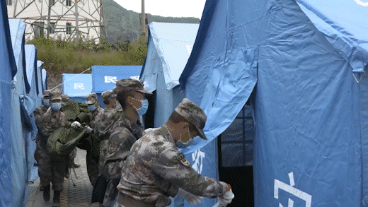 9月7日,是四川泸定地震发生后的第三天,在西部战区前进指挥组的统筹指挥下,解放军和武警部队官兵、民兵预备役人员争分夺秒,综合运用多种手段展开水陆空立体救援,尽最大努力进村入户救助受困群众,同时继续展开受灾群众安置点建设、受伤群众转移、救灾物资发放、次生灾害排查等工作,帮助群众尽快恢复生产生活秩序。