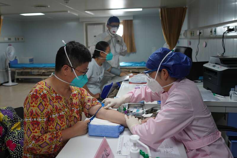 11月11日,“和谐使命-2022”任务医疗服务在印尼雅加达丹戎不碌港码头和“和平方舟”号医院船上同时展开。蒲海洋/摄