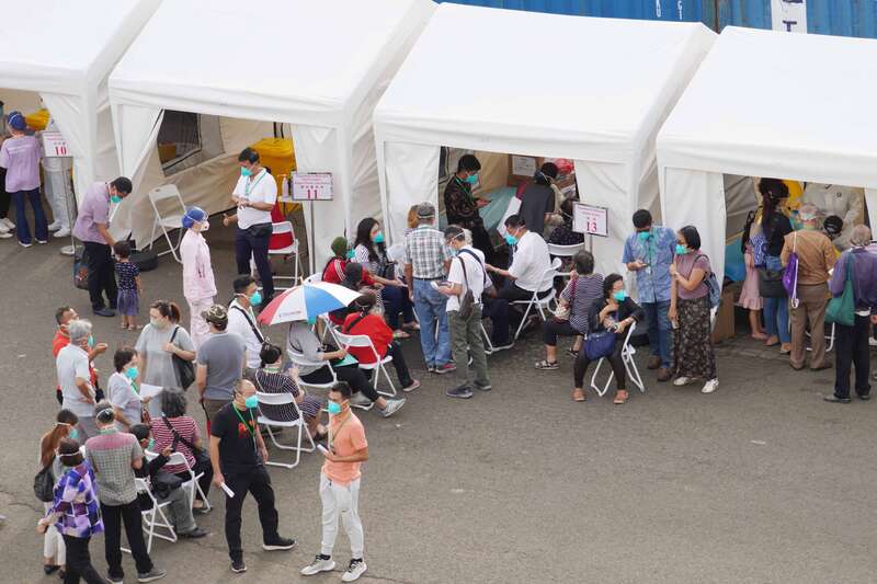 当地民众在码头诊疗区排队等候就诊。孙飞/ 摄