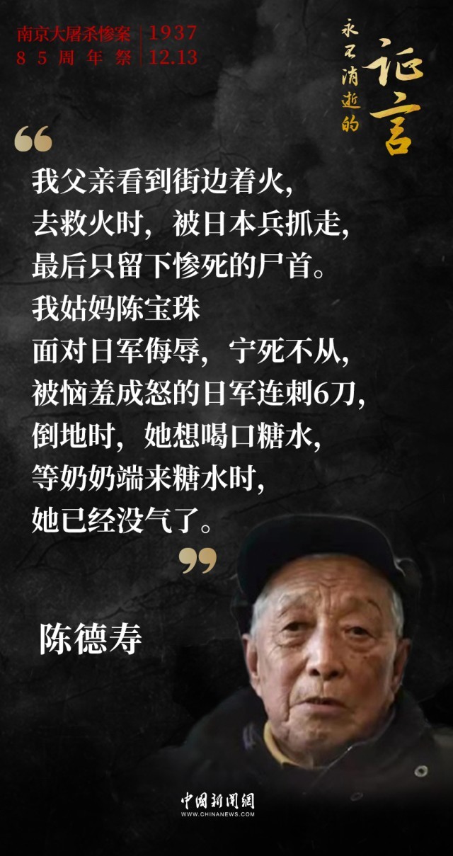 截至2022年12月5日,登记在册的南京大屠杀在世幸存者仅剩54位,幸存者们承载了民族苦难的记忆,他们是历史重要的证人。85年过去,历史见证人逐一离去,那一声道歉还要再等多久?历史不会被磨灭,证言永不会消逝↓↓↓
