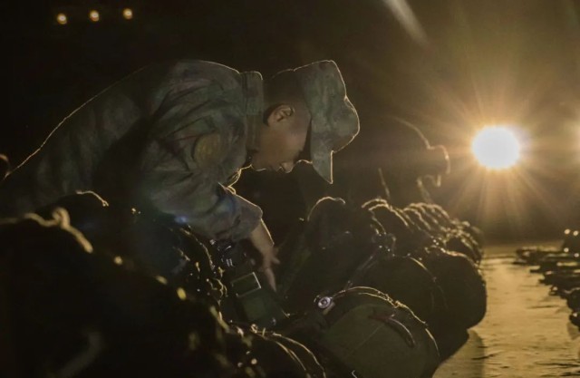 ▲夜色下伞降教员检查伞具