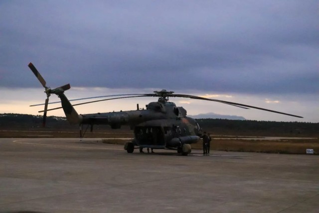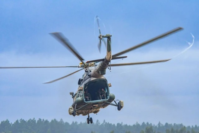 ▲飞行员检查直升机