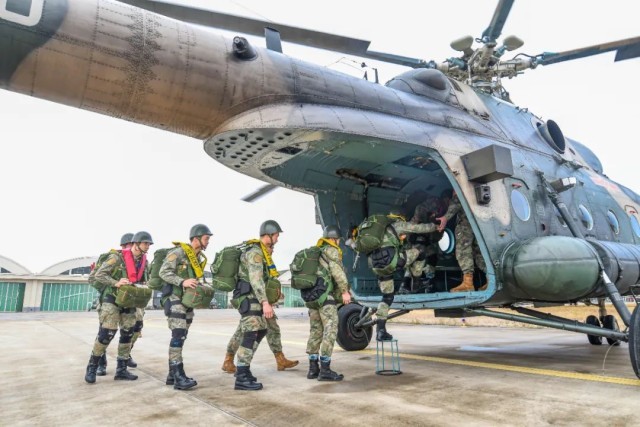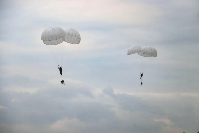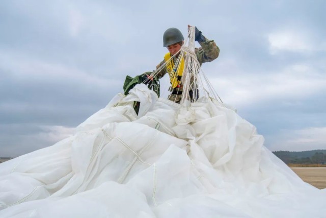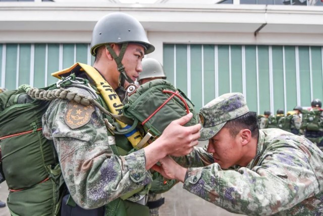 伞降队员们迅速背好降落伞