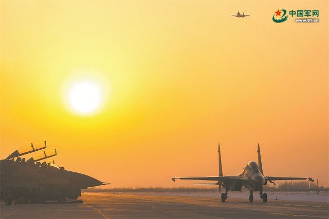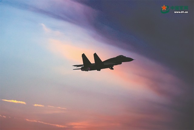 夕阳西下,余霞成绮。飞行员驾驶战机再次升空,区分红蓝双方开展实战背景下攻防对抗训练。夜色中,战机呼啸,搏击长空……