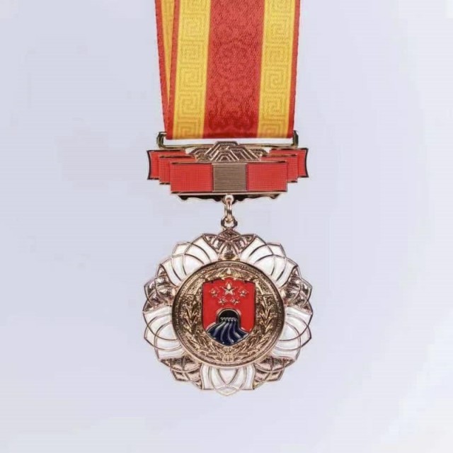 国家移民管理机构戍守边疆纪念章主章由五星、长城关隘、盾牌、橄榄枝、雪莲花等元素构成。体现移民管理机构依法履行职责,担负维护国家主权、安全和发展利益,促进服务经济社会发展,保障中外人员交往交流使命任务。雪莲花寓意坚守、无畏、纯洁,象征戍边民警的忠诚信念和崇高品格、顽强意志和无私奉献、斗争精神和血性担当。副章由飘带、山峰、如意等元素构成,金银铜色条分别代表戍边30年、20年、10年。