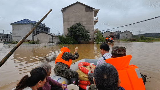5月5日至6日,江西抚州多个乡镇遭遇特大暴雨。强降雨导致河水猛涨、农田被淹,出现了大规模城镇内涝。武警江西总队抚州支队官兵迅速集结,携带救援装备赶往抚州市宜黄县梨溪镇、崇仁县六家桥乡等地展开救援。