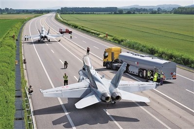 瑞士空军F/A-18战斗机进行公路起降训练。
