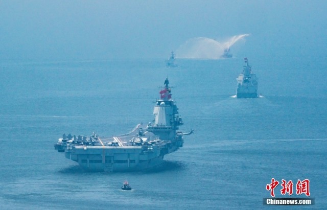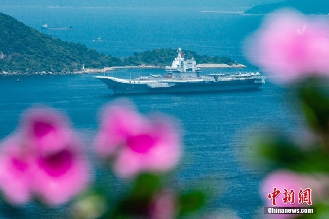 7月7日,中国人民解放军海军山东舰航母编队结束为期5天的访问,驶离香港特区。图为航空母舰山东舰通过东博寮海峡。
