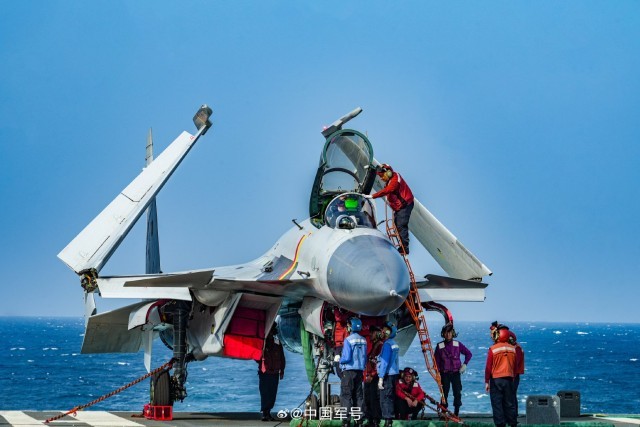 近日,海军舰载航空兵某部开展海上实战化飞行训练,进一步提升部队全天候作战能力。战机升空后,飞行员驾驶战机互为对手,各自组成战斗编组,展开空中对抗。