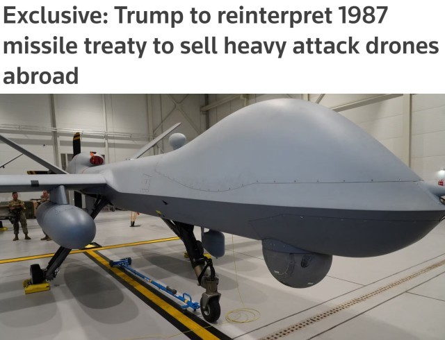 路透社5日援引美国官员和知情人士的消息报道称,美国总统特朗普正计划单方面“重新解读”已生效38年、旨在防止导弹技术扩散的“导弹及其技术控制制度”(MTCR),目的是为美国MQ-9“死神”无人机及其他先进的军用无人机开拓更广阔的海外市场。
