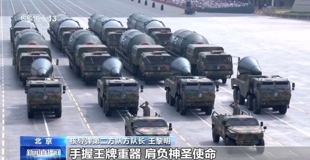核导弹第二方队方队长 王黎明:东风-5C液体洲际战略核导弹打击范围覆盖全球,是此次战略打击群最后亮相的战略重拳。手握王牌重器,肩负神圣使命,我们全时戒备、有效威慑;听令出鞘、砥定乾坤!