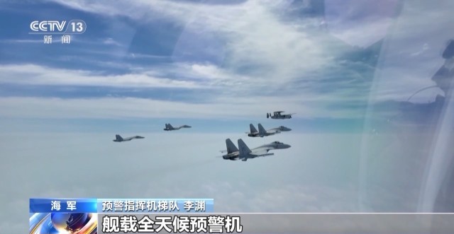 海军航空兵某部 朱博元:未来的战争都是体系之间的对抗和较量,对航母编队来讲,这一点显得尤为重要。因为整个航母编队部署在远海大洋,所以它更需要一个局部的、体系之间的配合,这个体系里面包括预警机、战斗机、电子战飞机以及其他水面舰艇力量。比较典型的航母编队体系构成有我们的歼-35飞机、歼 -15T飞机、歼 -15D飞机,以及空警600。在不远的将来,会更加显著地体现它的体系作战能力。