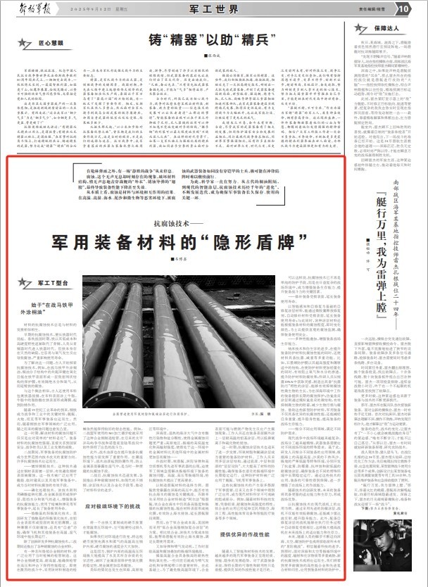 从本质上看,腐蚀是材料与环境相互作用的结果。在高温、高湿、海水、泥沙和微生物等恶劣环境下,被腐蚀的武器装备如同没有穿铠甲的士兵,极可能在冲锋陷阵时难以继续前行。