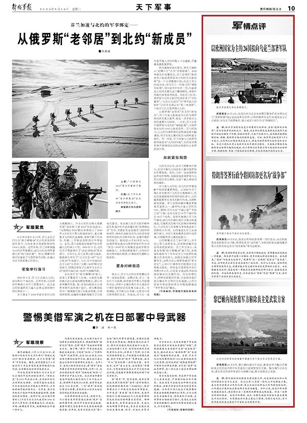 点 评:欧洲多国将向乌克兰部署军队的举动,名为“提供安全保障”,实为向俄罗斯施加压力。据悉,这支部队将在未来俄乌达成停火或和平协议的框架下部署,由欧洲领导,人数可达数万人,美国将在指挥控制系统、情报、监视等方面向其提供支援。对此,俄罗斯总统普京9月5日表示,北约部队如果出现在乌克兰,将成为俄罗斯军队的合法打击目标。乌克兰危机本质上是欧洲安全矛盾的总爆发。当前各方围绕为乌提供安全保障问题相互喊话,但只有努力找寻各方均可接受的安全保障方案,构建均衡、有效、可持续的安全架构,才能实现欧洲的长治久安。