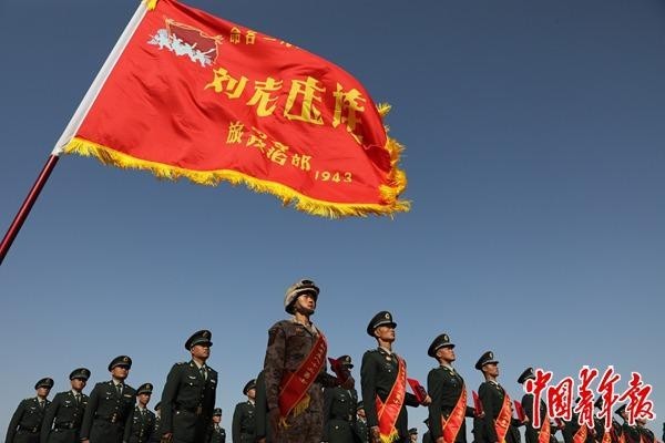 9月15日,一场特殊的颁授仪式在野外驻训场举行,“刘老庄连”11名参与纪念中国人民抗日战争暨世界反法西斯战争胜利80周年阅兵式的官兵被评为“新时代刘老庄八十二勇士”,全连官兵面朝东南江苏淮阴刘老庄的方向,喊出“生命不息、战斗不止”的口号。