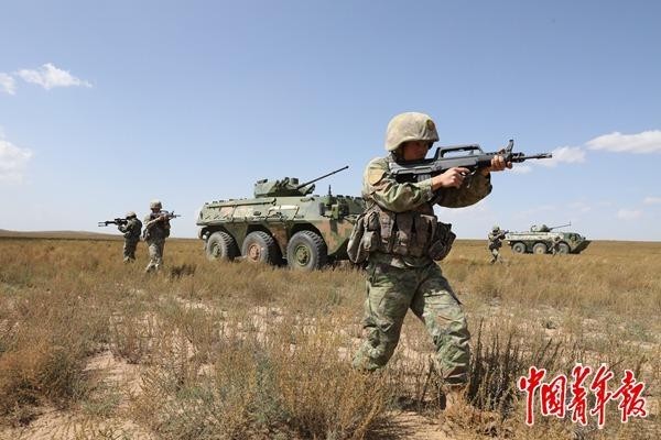9月13日,塞北某野外驻训场,“刘老庄连”官兵进行实战课目演练。