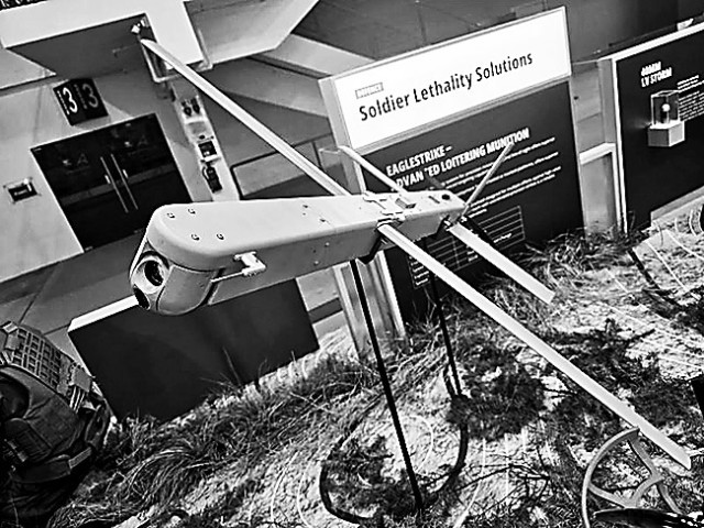 新加坡科技工程公司在本届航展上展示了新一代“鹰击”智能巡飞弹。据介绍,该巡飞弹采用矩形弹体,配备一对可折叠的平直弹翼,4片可折叠尾翼呈“X”形布置,最大作战半径20千米,最长留空时间30分钟,最大飞行速度为108千米/小时。“鹰击”智能巡飞弹弹头装有一个多通道红外/光电导引头,并配有串联破甲战斗部,如有需要,还可换装杀爆战斗部、温压战斗部。该巡飞弹目前主要以轮式/履带式车辆为发射平台,但也可以根据需要集成到作战舰艇或直升机、无人机上。