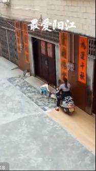 2日下午17时许,微信公众号发现阳江发布一条题为《阳江一夫娘开摩托车碾压细仔》的推文。文中曝光的一段42秒的视频显示,一个约四五岁的小女孩躺在路边,旁边一名女子骑着摩托压在小女孩腿上。从视频中可以看到,女子的车速并不快,但是确有故意之嫌。