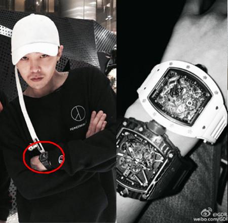 在日前举行的2016年SBS歌谣大战中,权志龙上台献艺,带着白帽子和金黄色衣服登场的他气场十足,手上佩戴的白色手表更是惹眼。不久便有粉丝扒出,这款手表是法国奢侈品牌Richard Mille产品,价值5亿9000万韩元(约人民币340万元)。不少网友表示:“款爷就是款爷,一块表比我一栋房子还贵!”“手里总是佩戴楼房!”