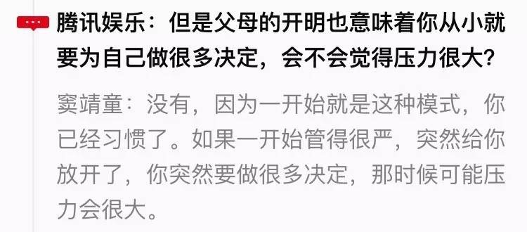 窦靖童没有老妈那么傲,其实也是老妈培养的结果。王菲从小对她的要求只有一个:你可以不乖,但你不可以坏。