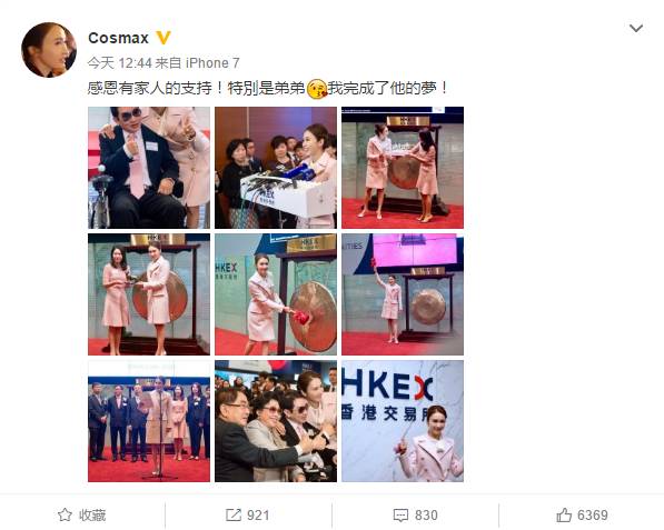 黎姿也在其微博表示,卓珈控股的上市也是完成了弟弟的梦。