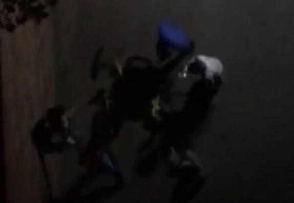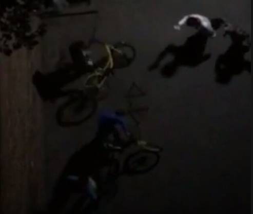 另一个孩子看到这一幕,也抡起了另一辆单车,然后将单车种种摔向那辆倒在地上的单车上,辆车相撞,又是一声巨响。