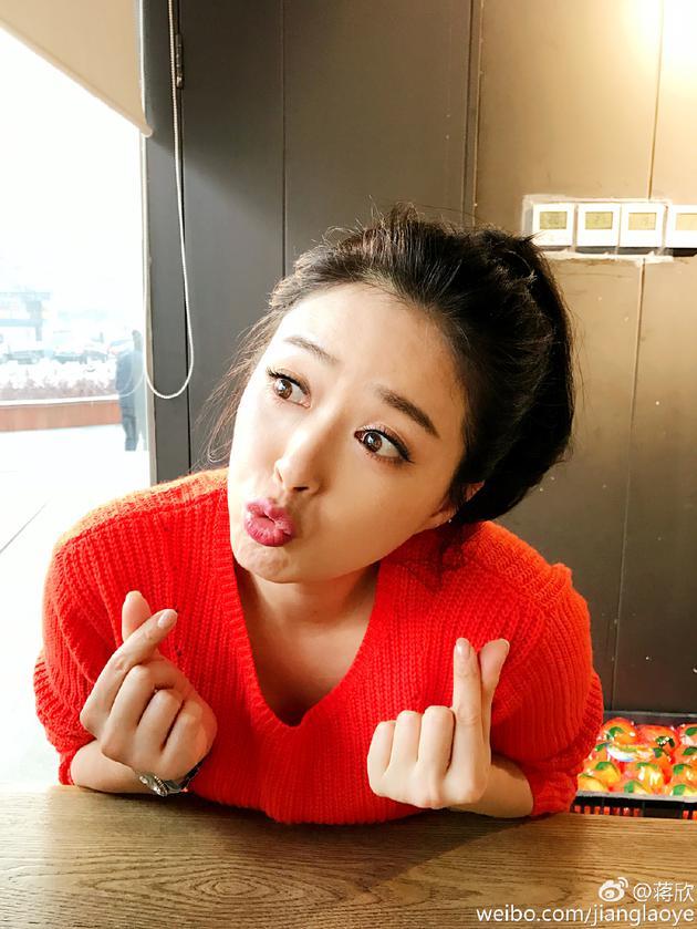 新浪娱乐讯 1月17日下午,蒋欣微博晒出一张双手比心的嘟嘴卖萌照,变身智商担当考问网友,“来!打一成语!”照片中,蒋欣穿着一件洋红色毛衣,双手比出爱心,嘟嘟嘴呆萌可爱。她还不忘考考大家,称此情景可打一成语。
