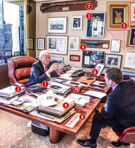 【特朗普办公室曝光】美国地产大亨特朗普将在本周五(北京时间周六),从“美国准总统”的称呼正式成为“美国总统”,虽然他还没有搬进白宫,但许多媒体已经纷纷进入他在特朗普大楼的办公室参观,也窥见特朗普办公室摆设的秘密。