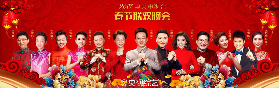 1月25日,央视综艺的官方微博曝光了一组2017年央视鸡年春晚主持人全阵容官方海报。朱军、董卿、康辉、朱迅、尼格买提等13位主持人携手向观众朋友们拜年。