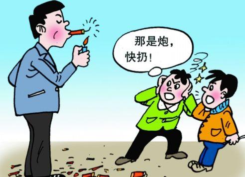 他把点燃的鞭炮