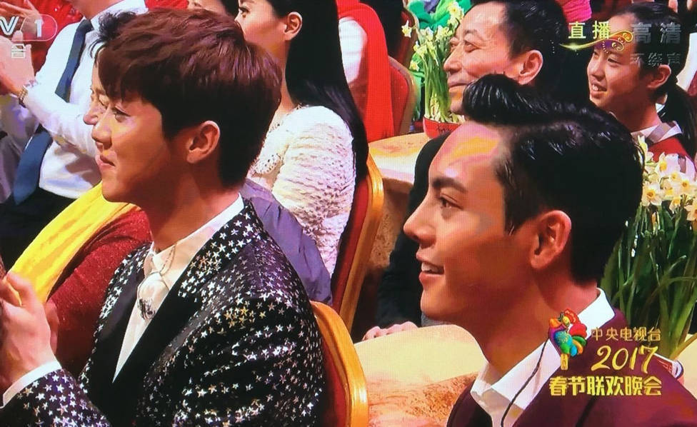 给摄影师加鸡腿,一下扑捉到四位男神,一排胡歌、王凯,三排鹿晗、陈伟霆。