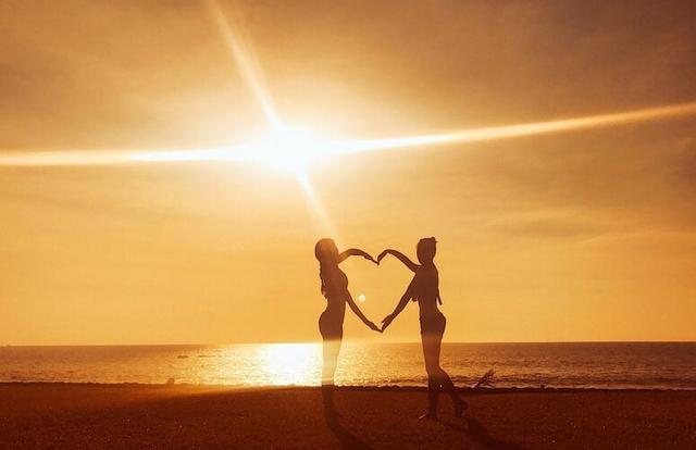 应采儿和闺蜜在海边拍下性感写真。