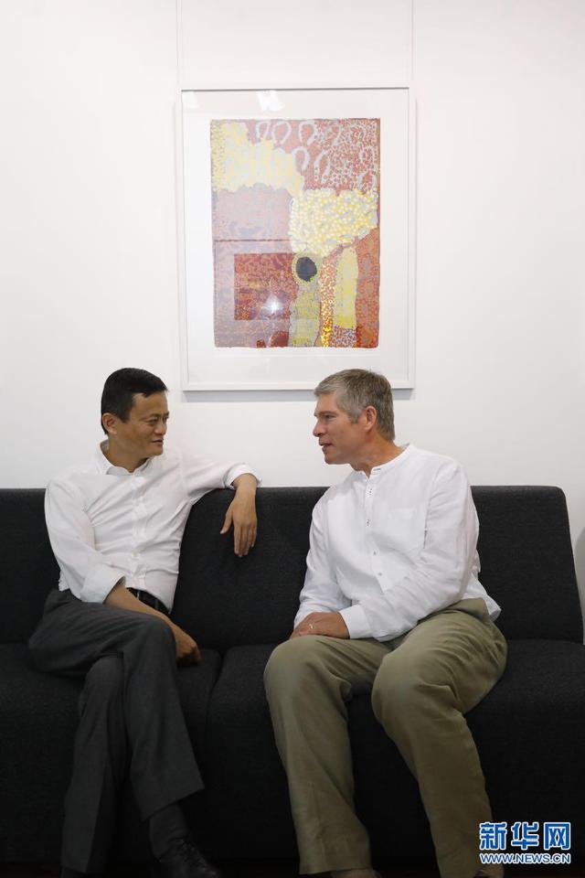 2月3日,马云与少年时的笔友David Morley在澳大利亚纽卡斯尔大学交谈。
