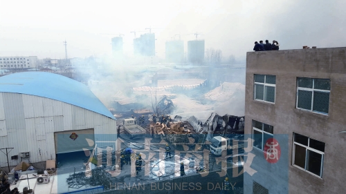 6日下午1点20分许,管城区南曹乡政府向南约100米路东一处工厂突发火灾,多辆消防车随后赶至现场进行救援。下午3点左右,河南商报记者在现场看到,大量浓烟飘在空中,有数十米高,事发路段停靠有六七辆消防车。据现场村民介绍,失火的是一家沙发厂,火势迅速蔓延将厂房烧塌,相邻的存放有润滑油的仓库也被引燃,现场不时有爆燃声传出。