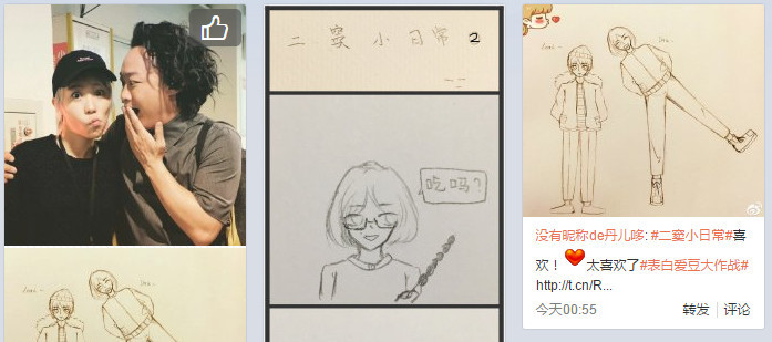 当然了,黑也好,亲也好,都是两个姐妹表达感情的方式,别看窦家媛这么小,其实心眼里惦记着窦靖童呢,自己默默的开了个话题,二窦小日常,经常画些和姐姐的漫画放在这里面。