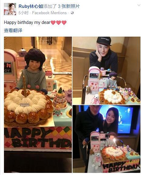 林心如脸书截图,她用英文写“生日快乐,我亲爱的”,附了三颗爱心表情
