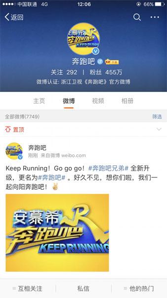 都说“周一见”,本周一的新闻有点大。今早,原《奔跑吧兄弟》官方微博正式发声,“奔跑吧兄弟”节目正式更名为“奔跑吧”,并发布了全新的logo。新一季节目依旧由安慕希冠名。新版LOGO维持了先前的字体和黄蓝配色,保持了奔跑状的“R”元素;不一样的是,而英文名“RUNNING MAN”则改成了“KEEP RUNNING”,似乎寓意着就算改名,依然“keep”着的是兄弟情,也是奔跑的精神。