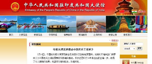 中国驻印度大使馆网站截图