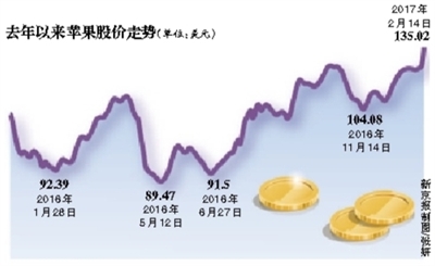 有分析指出,苹果股价去年第四季度涨2.5%;今年以来累涨近17%。