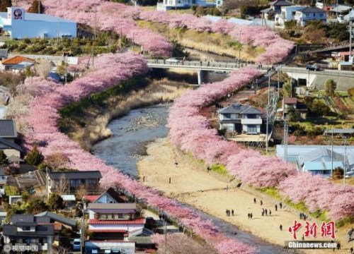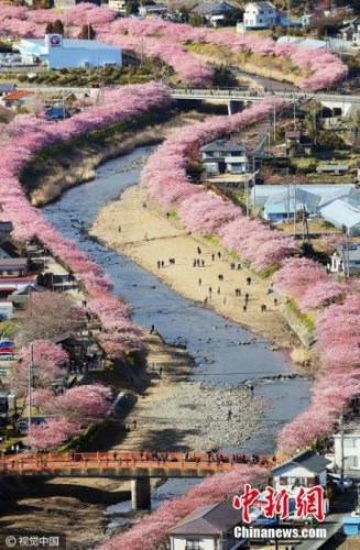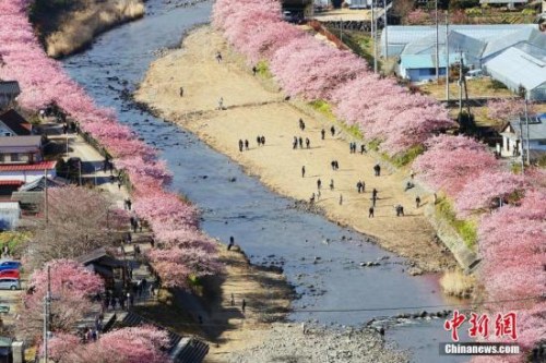 中新网2月17日电 据日媒报道,近日,日本静冈县河津町迎来了早开品种“河津樱花”的观赏期,吸引了大批赏花游客。