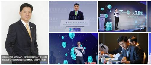 雷军有成名曲《Are you OK》,周鸿祎经常出现在360的恶搞海报上,马云会在年会上扮外星人跳舞,马化腾每年都有保留节目,但李彦宏一直就是以一个正襟危坐的企业家面貌出现在为数不多的论坛、大会,讲的无非也是AI、百度的战略和一些泛科技未来的“正经”话题。百度搜索“李彦宏”,出来的都是这种图片: