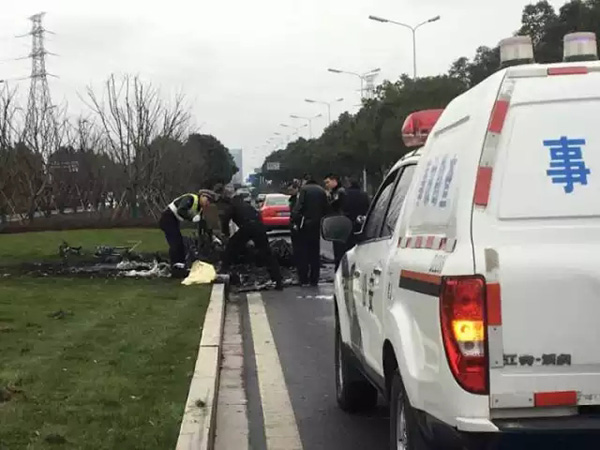 上午10点10分,钱江晚报记者赶到事故现场。交警正在整理现场。 事发在绍兴市中兴大道与袍渎路交叉口中兴大道往北150米处,记者赶到时,发现这里仍然一片烧焦的残骸,二十厘米的绿化带绿砖被碰碎一半,看得出来当时撞击的力度非常大。大约有四五平米的绿化带被烧毁,路边还有消防泡沫的痕迹,凑近的时候,还能闻到些许刺鼻的焦味。