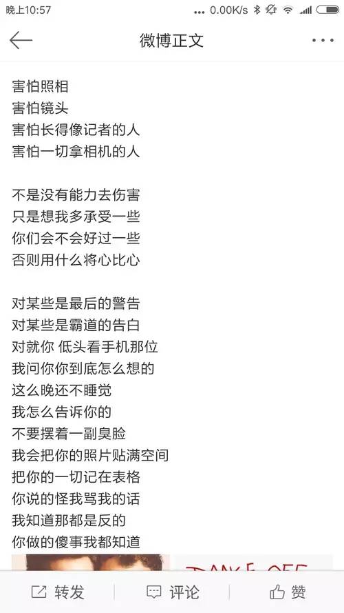 又是主动爆出自己的 微博小号,用足以气死语文老师的语言表达能力怒怼黑粉和营销号、写RAP一般抒发心声,小编真的不敢说自己看懂了多少—— (就在写稿的此时此刻,她的小号还在热搜上挂着呢)