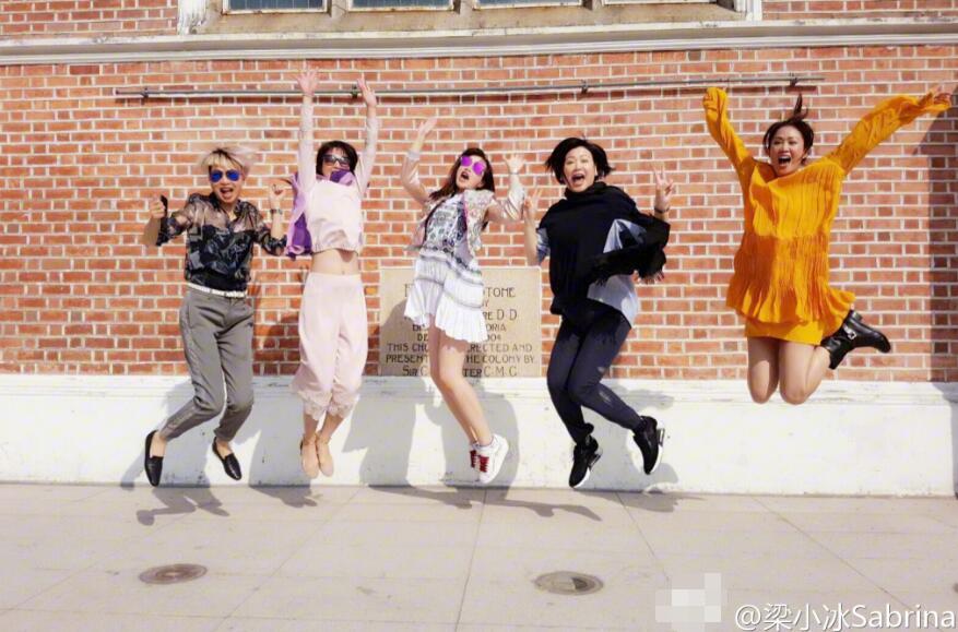 5位美魔女在教堂外的小花园大摆造型,更一齐跳起来,当中以梁小冰跳得最高,这班美魔女个个都充满活力!梁小冰在微博分享照片,留言︰“阳光明媚的日子,鹿鼎记五美,跑出来晒一晒,飞起来!累了!抱着睡。”