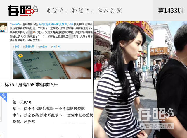 【郑爽小号关注减肥】其实这已经不是郑爽第一次小号被扒了,在《花儿与少年》播出后,网友按照节目中暴露的郑爽的邮箱地址,顺藤摸瓜找到她的小号。该账号的昵称为“壳大”,和郑爽的小名相吻合,发帖显示的身高体重等信息,也能一一和郑爽的资料对上。郑爽的小号唯一关注的贴吧就是胡彦斌吧,更让人诧异的是,身材已经极为纤细的她,发出的大部分帖子都是关于节食减肥的。不仅晒出了减肥的食谱,还暴露了自己的目标体重是75斤,这样病态求瘦的状态也让一众粉丝担心不已。(左上图为网友扒出郑爽小号,左下图为郑爽小号发帖纪录,右图为郑爽暴瘦)