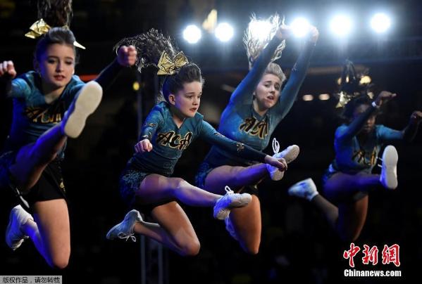 当地时间2月19日,英国伦敦Copperbox体育馆内,女孩们正在参加啦啦队舞蹈竞赛。