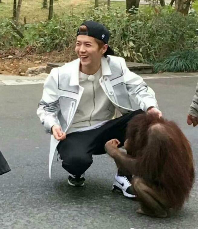 【本文转载自微信公众号“美女爱八卦”】作为目前娱乐圈炙手可热的人物,鹿晗的一举一动受到粉丝们的广泛关注。有粉丝就拍到了鹿晗在杭州录《奔跑吧》时的照片。照片中鹿晗竟然牵着一只大猩猩,看来这只大猩猩非常温顺,惹得鹿晗笑的花枝招展。