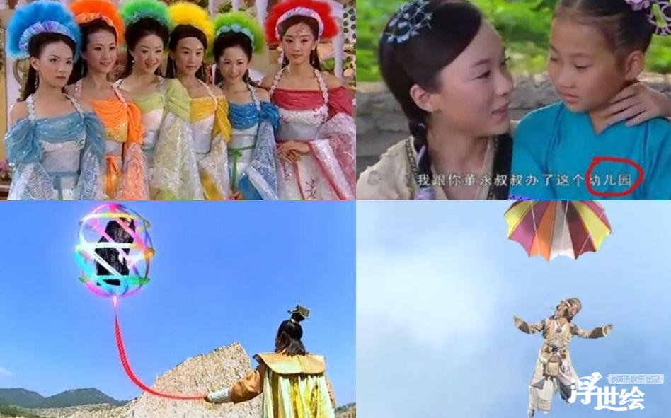 《欢天喜地七仙女》里备受诟病的炫彩服饰就不说了,但这浮夸的特效是什么鬼?道具出现降落伞、台词出现幼儿园又是什么鬼?我一定是看了假的古装剧……